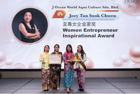 图说9:陈淑君荣获“2025年珍珠女企业家奖”卓越创新奖及至尊女企业家奖,实至名归。她致力于推动绿色产业发展,以海洋绿色珍珠为核心,积极倡导可持续理念,并期待与志同道合的伙伴携手共创美好未来。