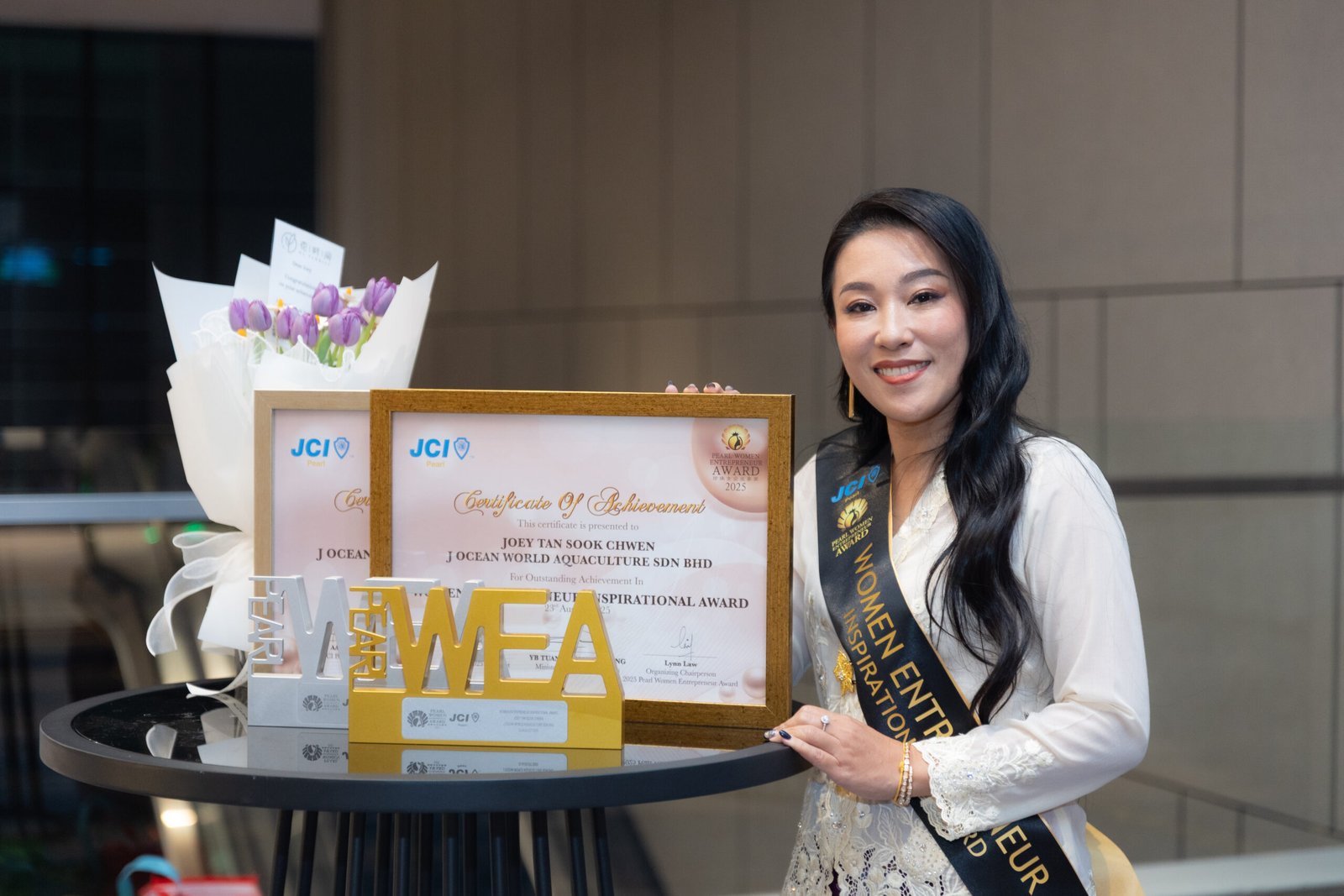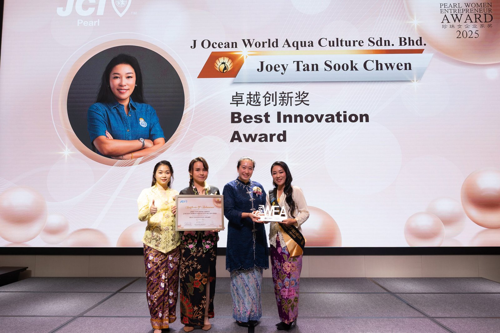We are thrilled to announce that the founder of J OCEAN World Aquaculture Sdn Bhd , Joey Tan has been recognized with the prestigious 2025 “Pearl Women Entrepreneurs” Award—an accolade that celebrates outstanding female business leaders for their remarkable achievements and contributions to innovation and society kwongwah.com.my.